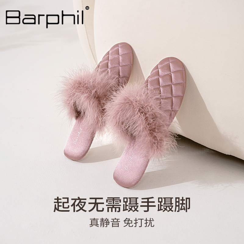 防滑 软底静音简约毛毛拖鞋 Barphil室内家居棉拖鞋 女2025秋冬新款