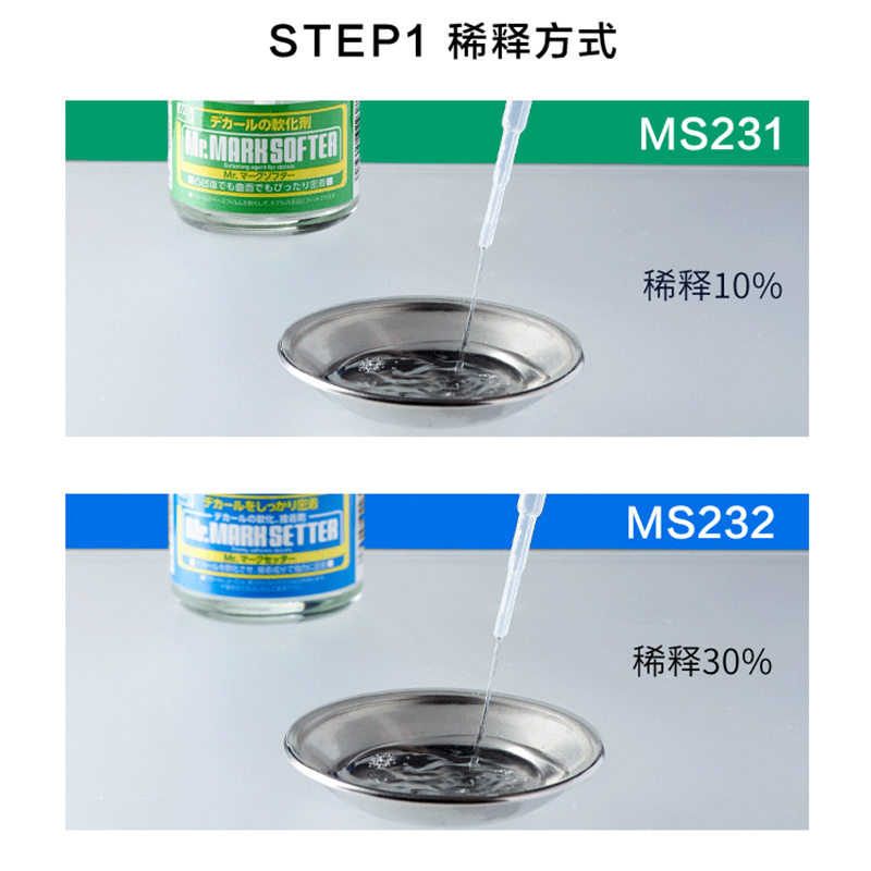 带背胶高达模型纸素组粘合 蓝绿盖 郡士MS231 MS232水贴软化剂