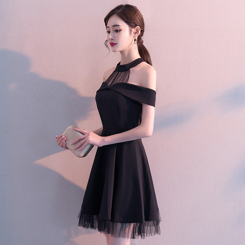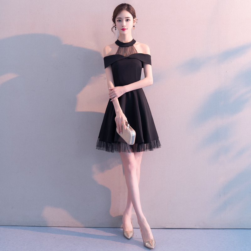 主持人宴会年会女 名媛气质连衣裙晚装 黑色晚礼服长款 鱼尾显瘦修身