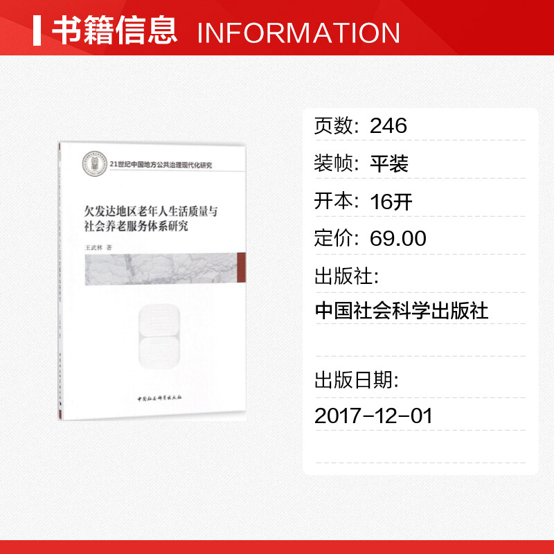 社会科学总论经管 励志 新华书店正版 欠发达地区老年人生活质量与社会养老服务体系研究 中国社会科学出版 著 图书籍 社 王武林