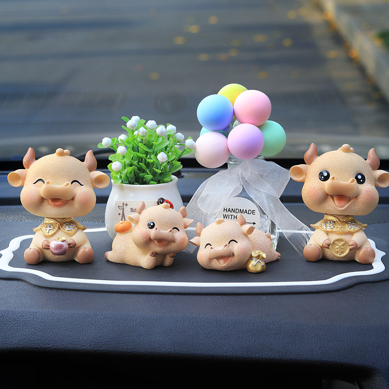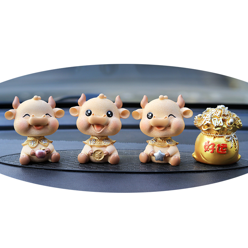 汽车摆件可爱摇头牛创意个性 车内饰男女礼品牛年祝福平安好看摆饰