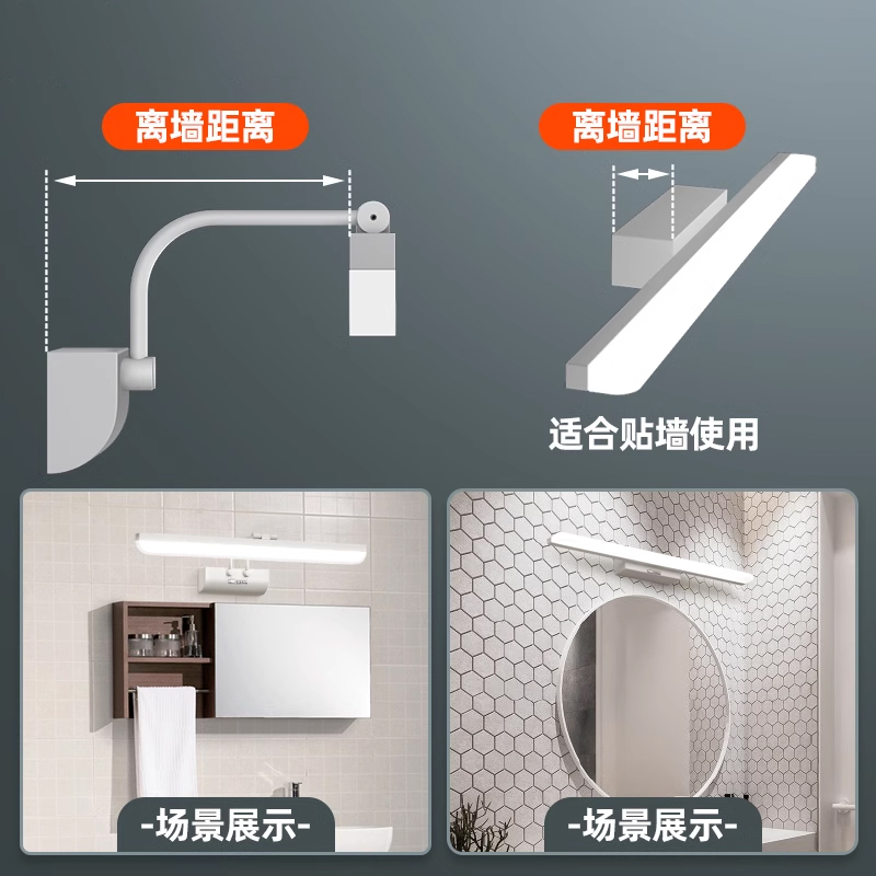 雷士照明北欧led镜前灯免打孔简约现代卫生间浴室镜柜梳妆化妆灯