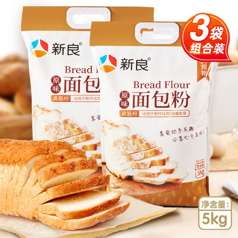 新良原味面包粉5kg 3高筋面粉烘焙吐司面包机家用烘焙原料小麦粉