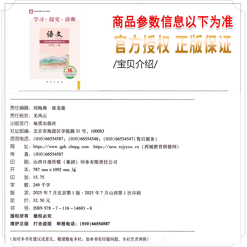 现货2025秋北京西城学习探究诊断语文八年级上册第16版 学探诊语文8八年级初二语文上册同步练习册北京市西城区教育研修学 人教版