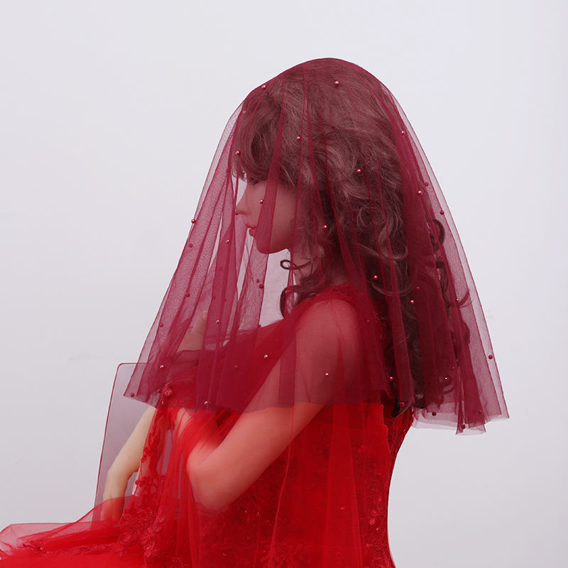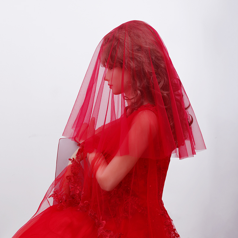 素纱头纱韩式 酒红黑 简约单层遮面旅拍超仙裸纱写真光纱新娘短长款