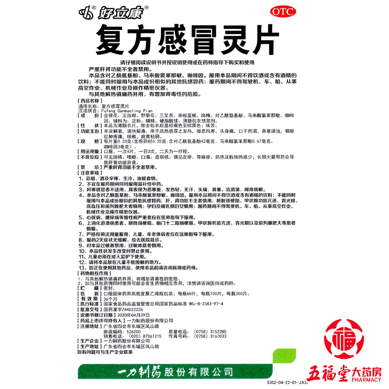 白云山风寒感冒颗粒6袋发热头痛鼻塞无汗恶寒咳嗽感冒药解表发汗