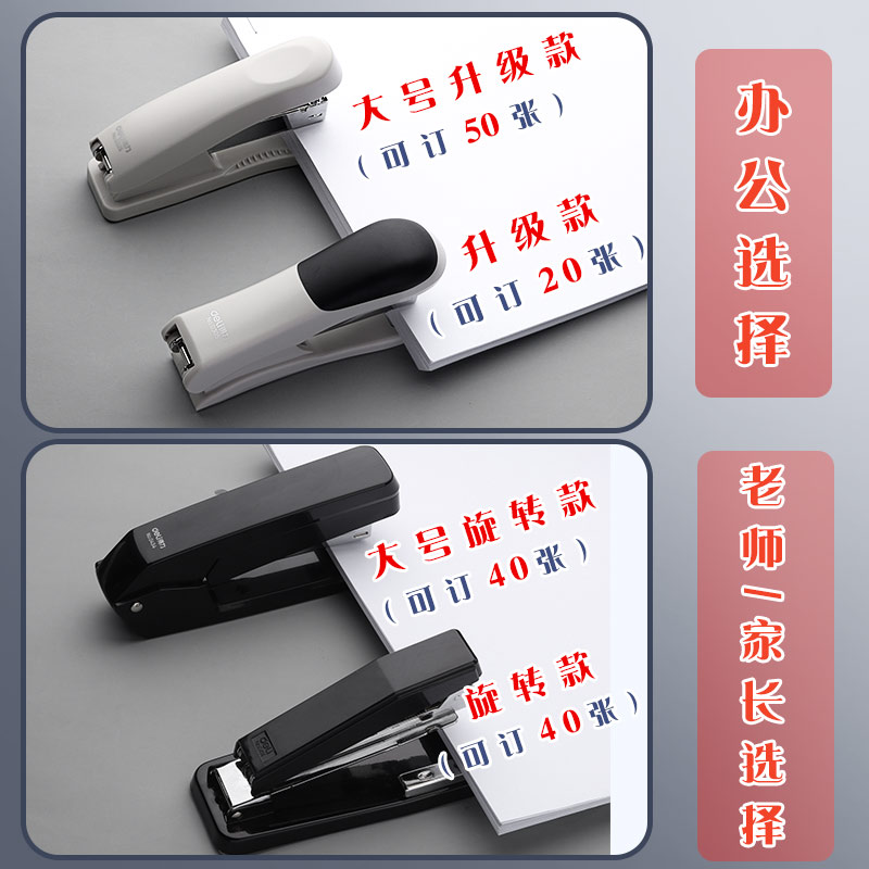 得力订书机办公用订书器加厚大号省力钉书机中号迷你小号学生用多功能可旋转订中缝定订厚书装 订机起钉器家用
