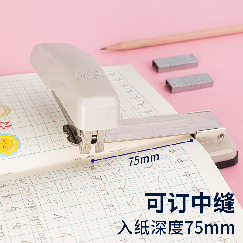得力文具可旋转订书机学生用大号加厚订书器12号标准型多功能办公用品小号订书钉50张省力定书机订中缝装 订机