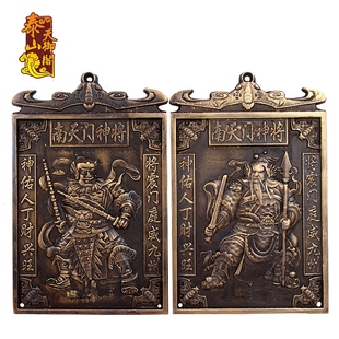 纯铜门神镇宅贴大门摆件门口神像挂件一对新年装 饰用品乔迁礼物盒