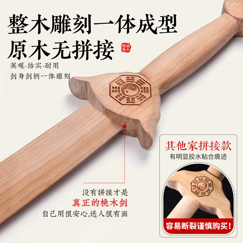 肥城桃木剑挂件宝剑木雕林正英剑长剑客厅一体七星太极一米晨练