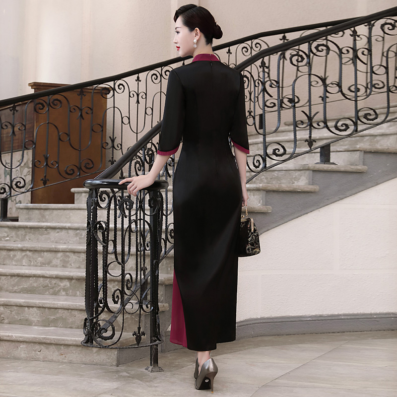 女连衣裙 演出旗袍年轻款 多丽琦旗袍中国风长款 优雅改良奥黛妈妈装