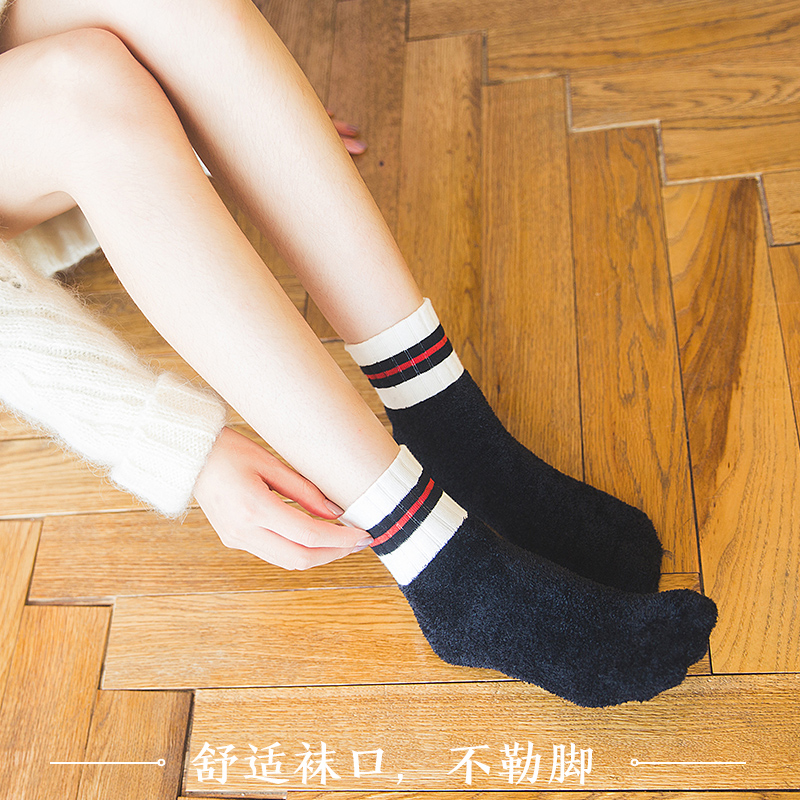 袜子成人女袜地板袜居家室内睡眠袜冬季 月子袜保暖加厚羽毛纱袜子