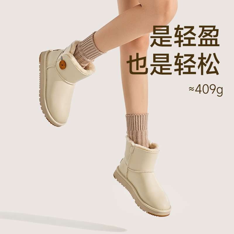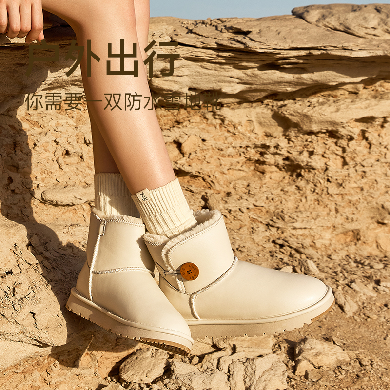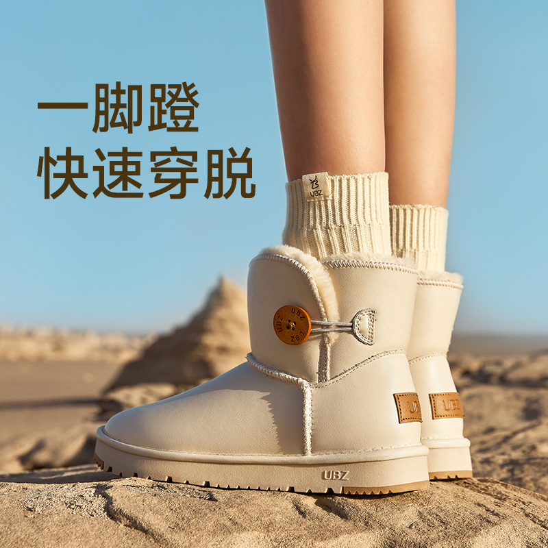 牛皮短靴 加绒加厚东北女士棉鞋 UBZ 白色皮面防水雪地靴女2025新款
