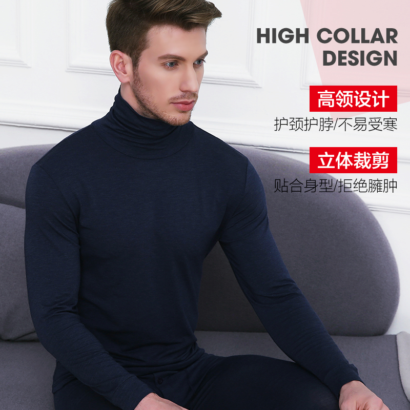 冬青年打底秋衣秋裤 莫代尔高领保暖内衣男士 纯棉毛衫 超薄款 男 套装