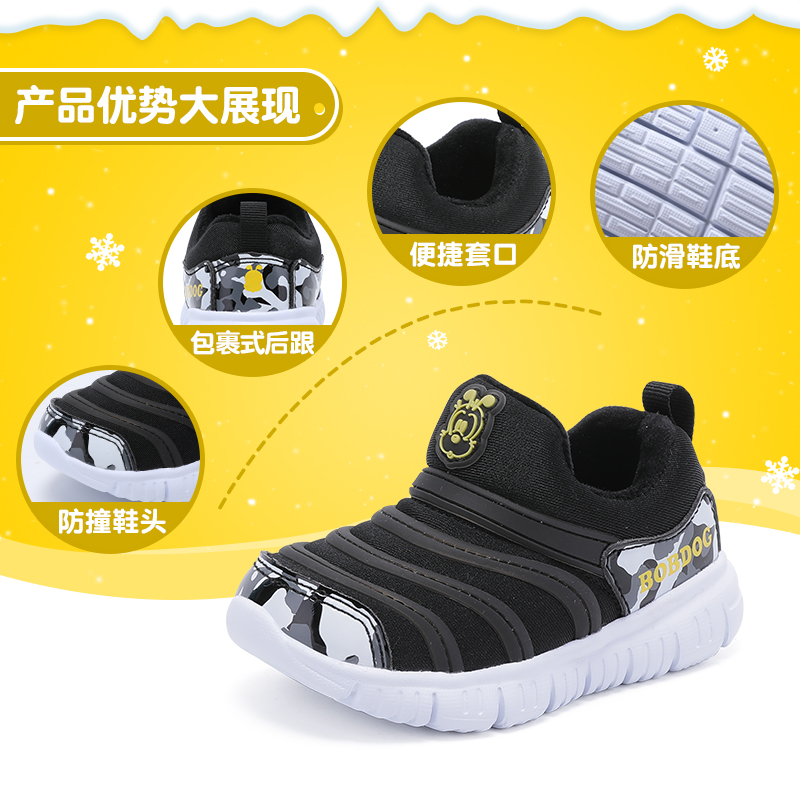 旗舰毛毛虫童鞋 2岁学步鞋 婴儿鞋 子秋冬软底宝宝棉鞋 巴布豆童鞋