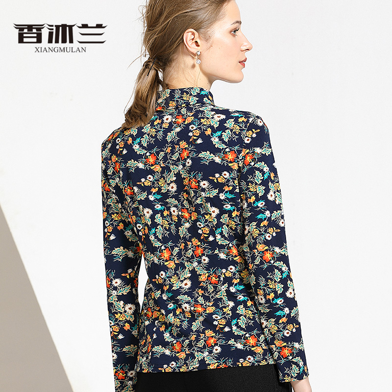衬衫 上衣妈妈洋气冰丝长袖 碎花中老年女印花时尚 香沐兰春秋新款