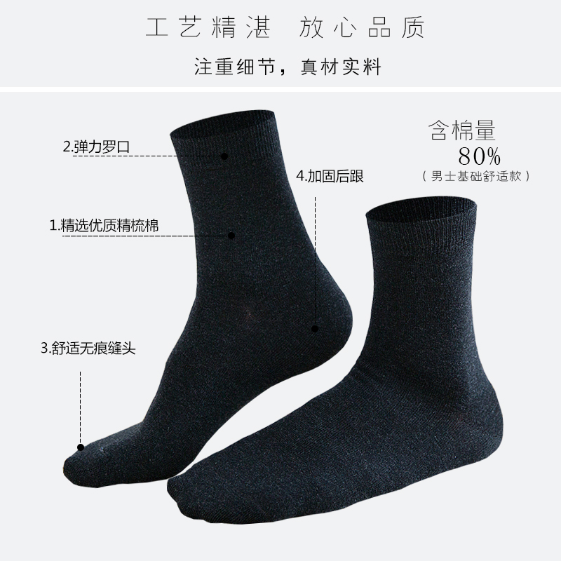 海澜之家男士 秋冬休闲透气短袜 袜子10A抗菌中筒袜防臭吸汗纯棉款