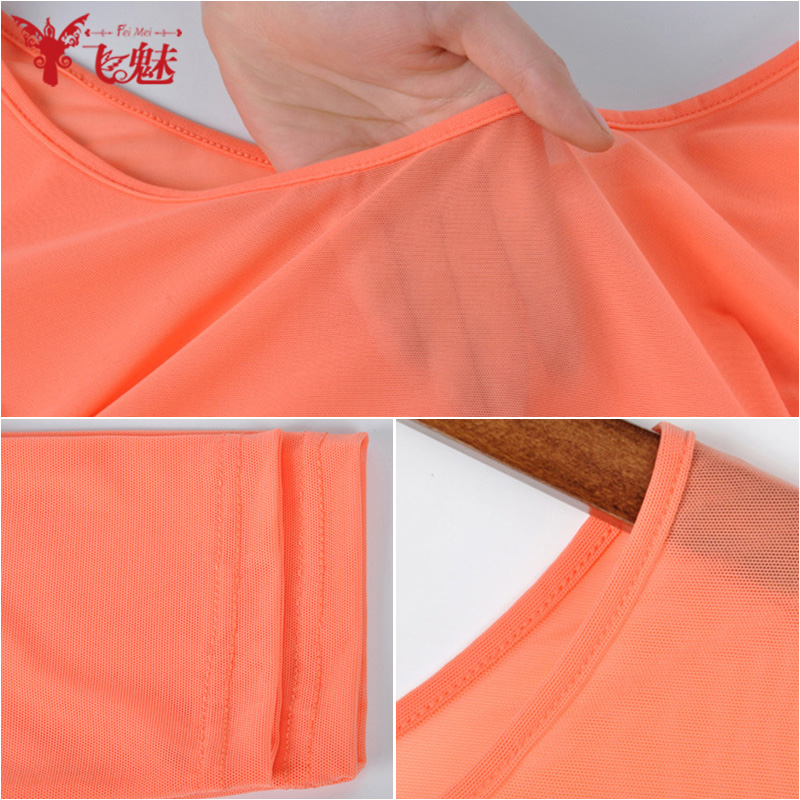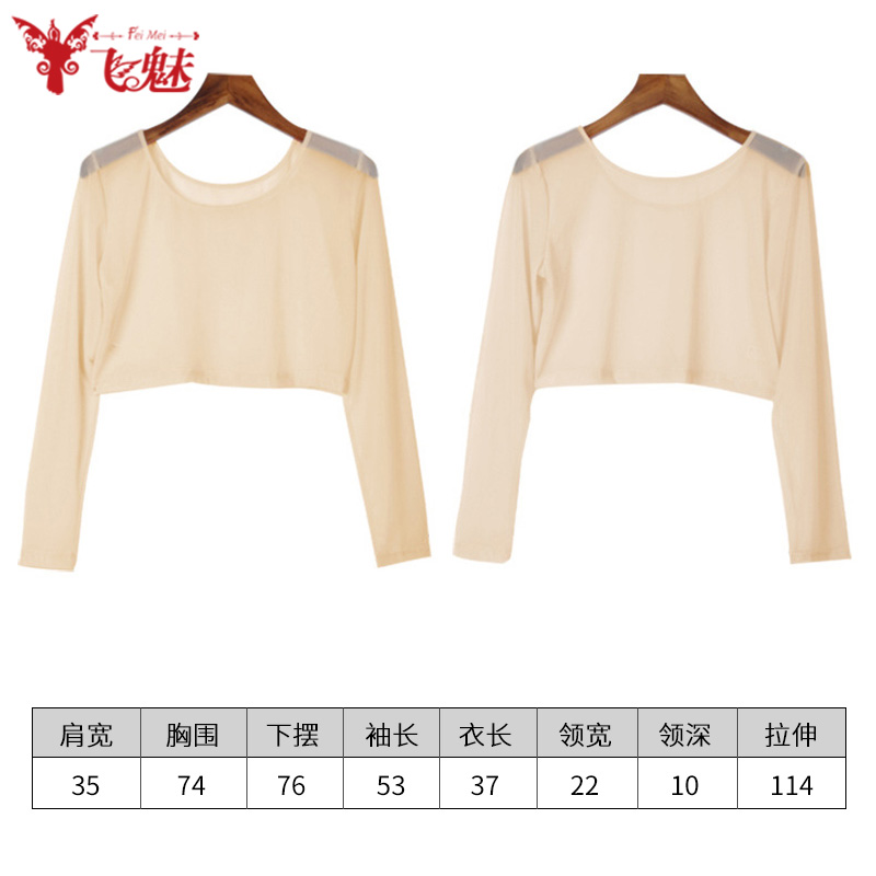 女款 薄纱上装 肉色半截网纱打底衣服长袖 飞魅肚皮舞上衣肤色打底衫