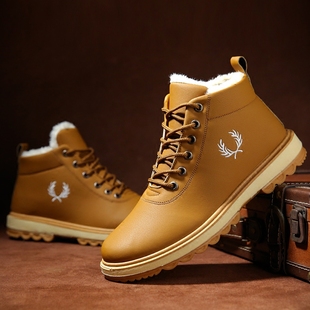 潮流高帮男鞋 韩版 雪地靴男保暖加绒马丁靴中帮英伦风短靴棉鞋 冬季
