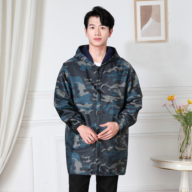罩衣男加绒家用防水防油长袖 大人工作服迷彩大褂 围裙厨房加厚冬季