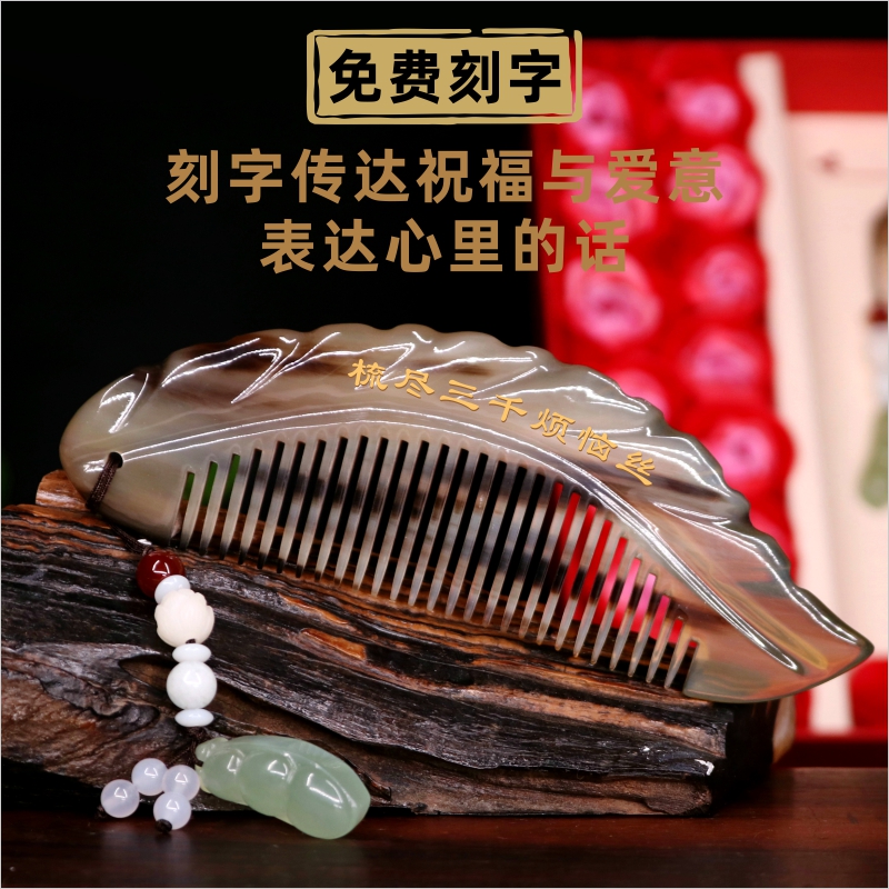 天然正品 牦牛角梳子女士礼物静电按摩脱发便携刻字送男女朋友老婆