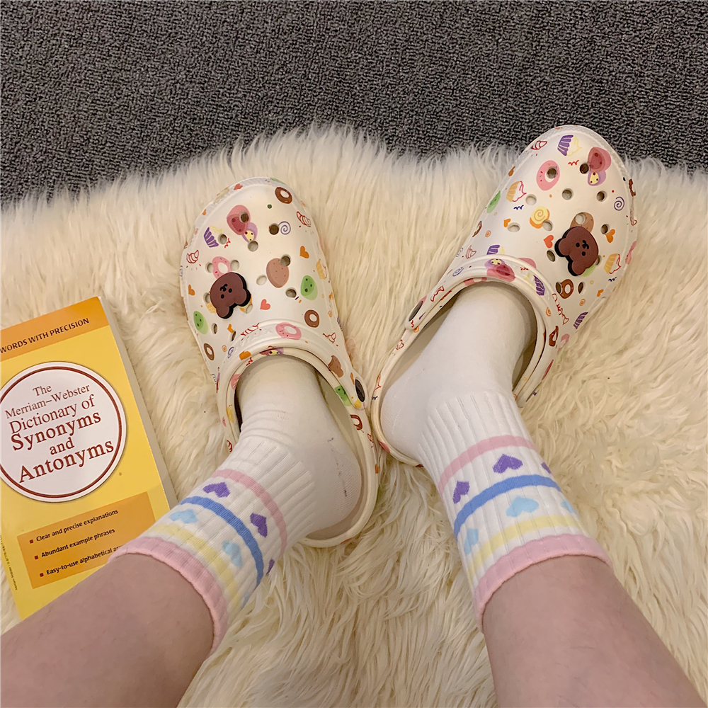 沙滩拖鞋 女平底卡通可爱防滑轻便舒适护士鞋 男 室内情侣洞洞鞋 韩版