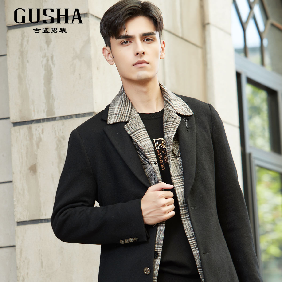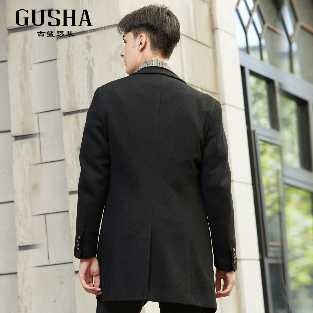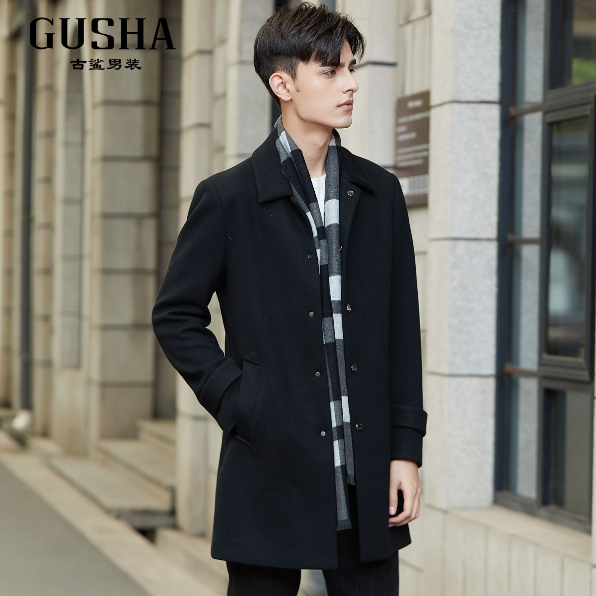 过膝无羊绒呢子风衣外套韩版 毛呢大衣男中长款 宽松落肩 新款 秋冬季