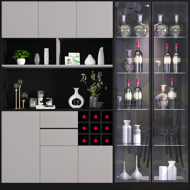 实木酒柜展示柜带玻璃门客厅靠墙小酒柜收纳储物柜轻奢书柜手办柜