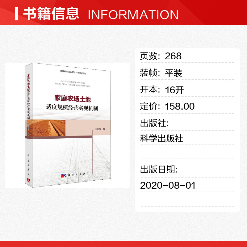 各部门经济经管 励志 新华书店正版 家庭农场土地适度规模经营实现机制 科学出版 著 图书籍 社 刘灵辉