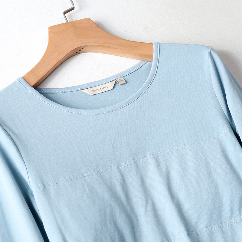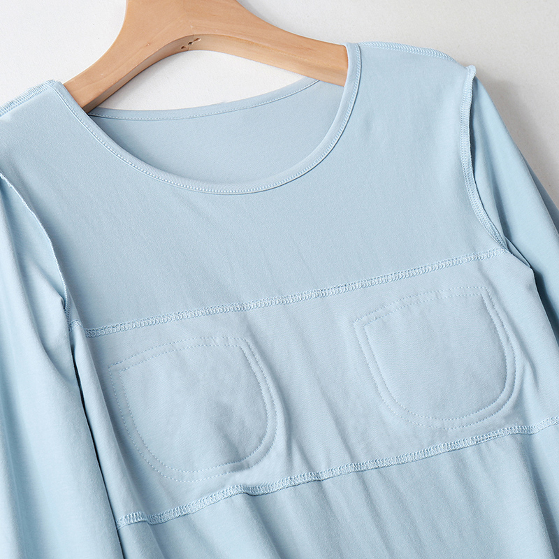 带胸垫长袖 睡衣女防凸点免穿文胸内衣T恤上衣秋衣家居服 打底衫