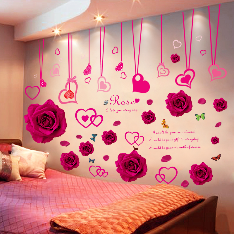 3D立体玫瑰花墙贴纸温馨卧室床头电视背景墙壁装 饰品房间墙纸自粘