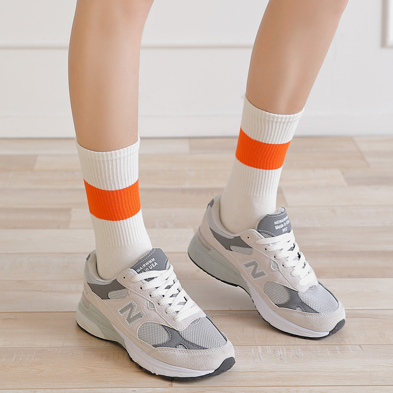 米白色长袜子男女潮流个性 高筒袜日系ins潮牌高腰条纹运动长筒袜