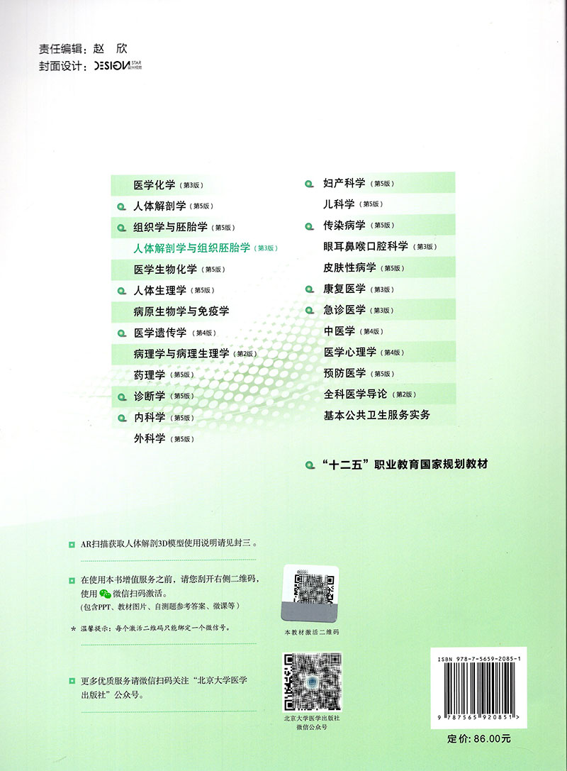 现货人体解剖学与组织胚胎学第3版 社9787565920851 第五轮十三五高职临床教材供临床医学类及相关专业用北京大学医学出版