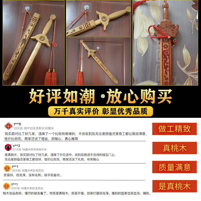 肥城桃木剑挂件宝剑木雕儿童玩具婴儿七星八卦剑道士剑摆件