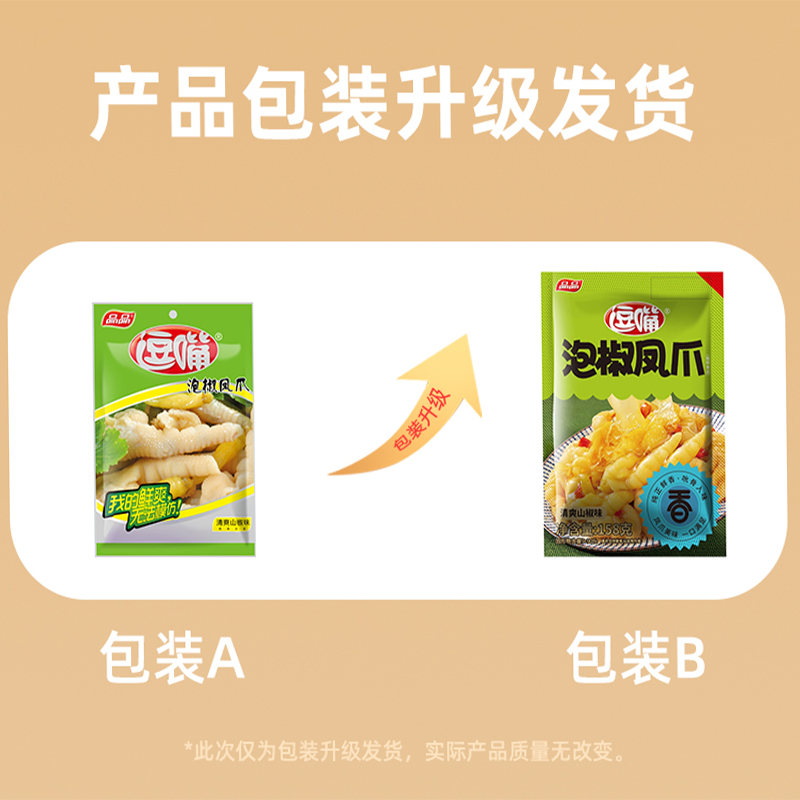 品品逗嘴泡椒凤爪酸辣野山椒鸡爪鸡肉零食有骨鸡脚独立小包装 158g