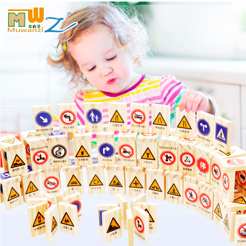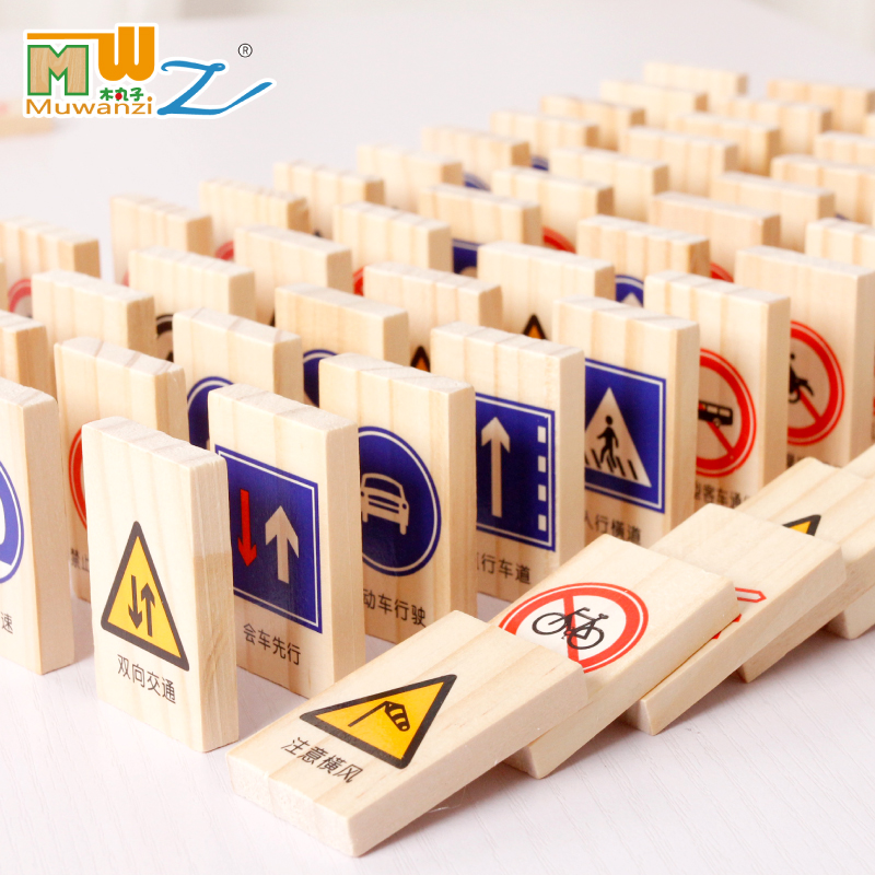 积木玩具益智汽车品牌标志交通标知识大全双面多米诺骨牌3 6岁