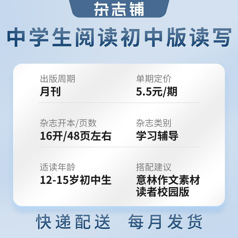提高能力 全年订阅 中学生阅读初中版 读写指导期刊图书 阅读训练 课外兴趣阅读 1年共12期 2026年1月起订 读写杂志 杂志铺