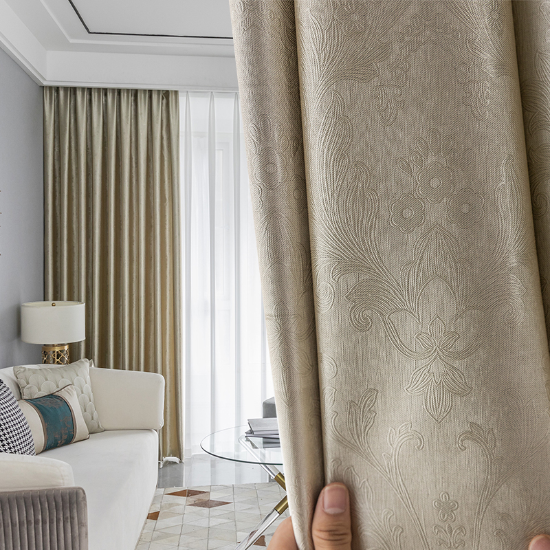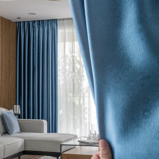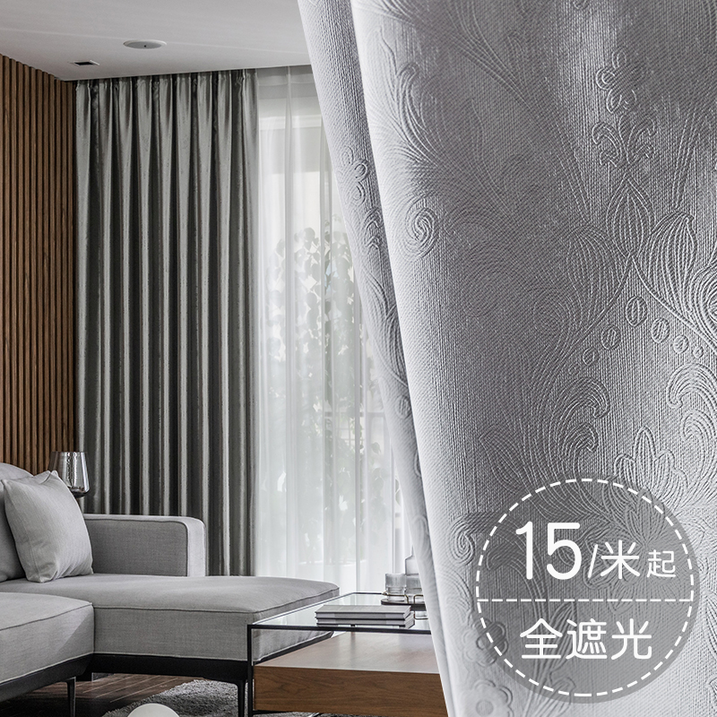加厚窗帘遮光布料电雕全遮光卧室阳台隔热窗帘北欧简约成品遮阳布