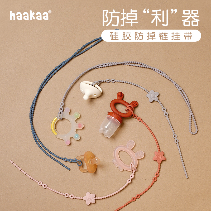 haakaa牙胶防掉链婴儿硅胶磨牙棒玩具挂带防丢绳子宝宝安抚奶嘴夹