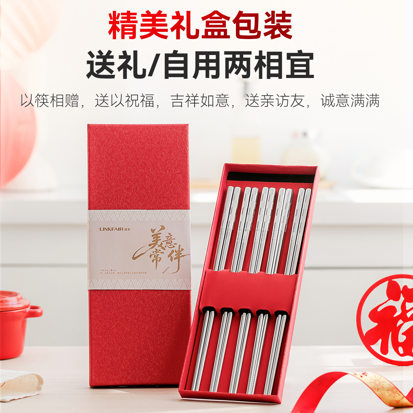 炊大皇鸡翅木筷子家用高档新款 抗菌防霉防滑木质快筷子油炸耐高温