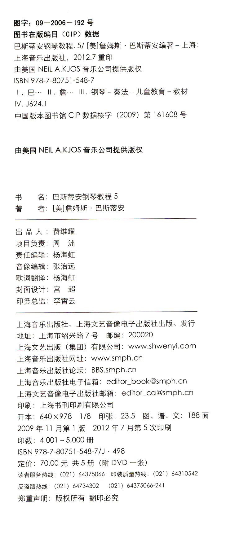 社原版 儿童初步钢琴书籍uvw 钢琴基础教程 儿童钢琴教程 钢琴入门 上海音乐出版 附DVD一张 共5册 巴斯蒂安钢琴教程 正版