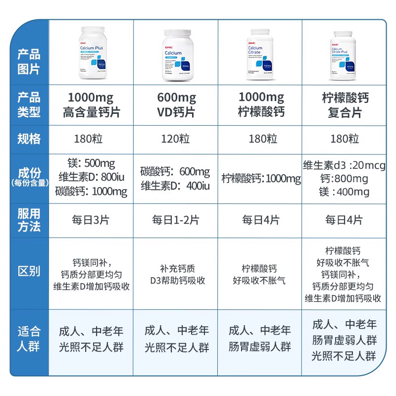 gnc健安喜美国进口钙片维生素柠檬酸钙碳酸钙女性 11.11预售