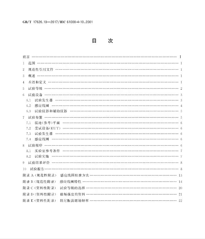 2017 17626.10 电磁兼容 试验和测量技术 17626 阻尼振荡磁场抗扰度试验