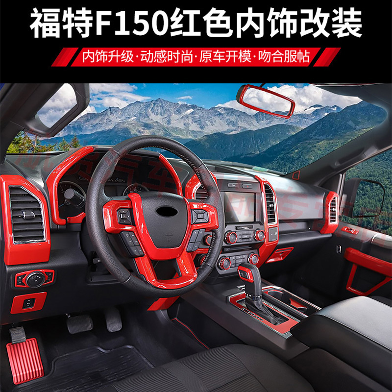 适用于福特猛禽F150内饰改装 饰配件 中控台导航排挡把方向盘红色装