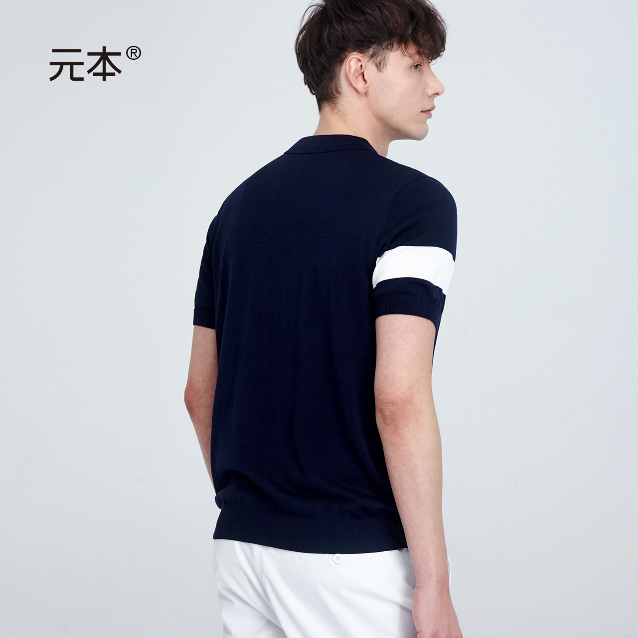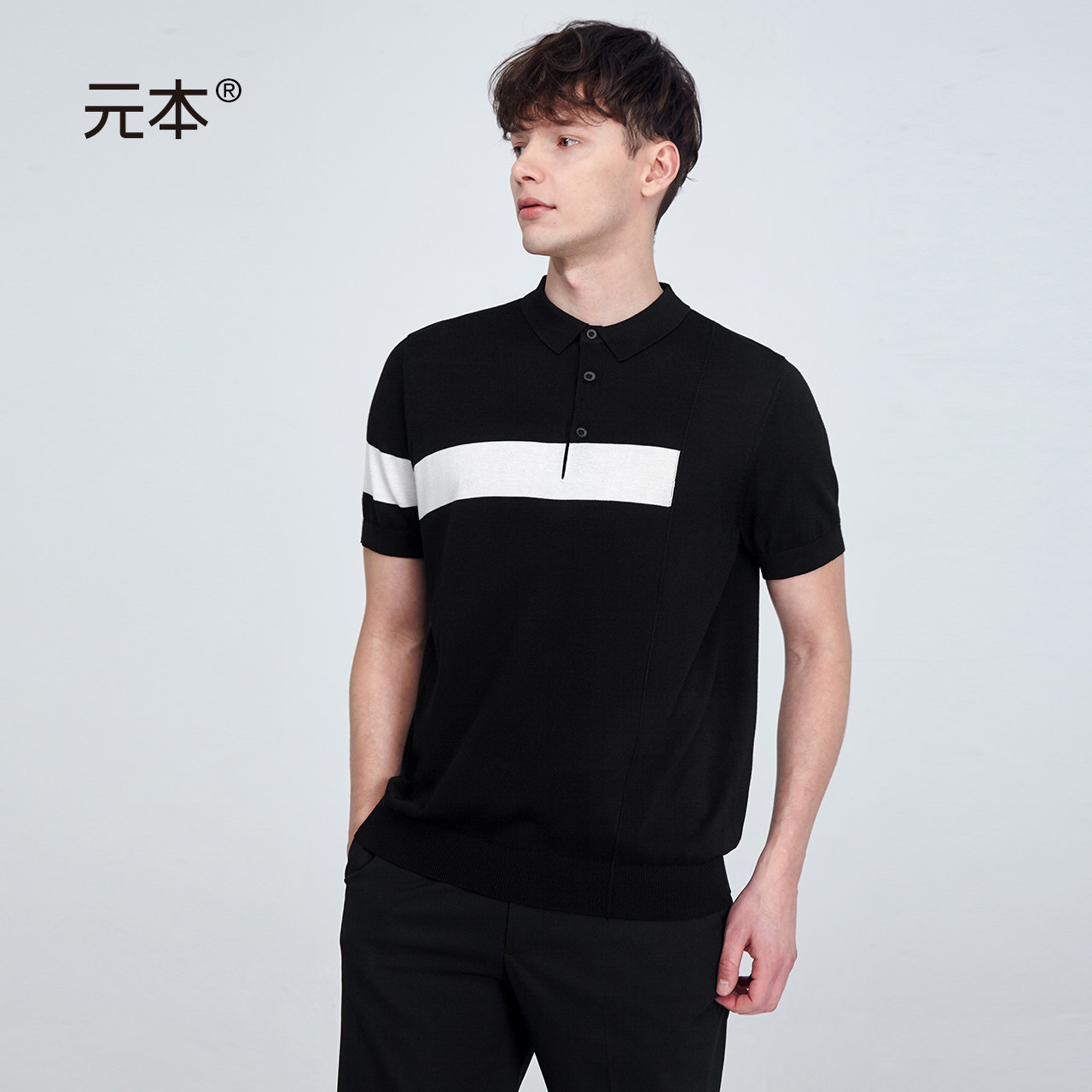 潮流冰爽天丝短袖 元 男夏季 几何美感配色针织POLO衫 薄翻领T恤 本