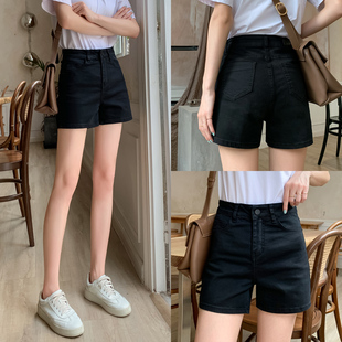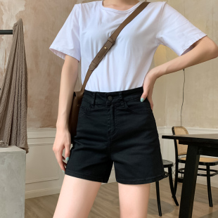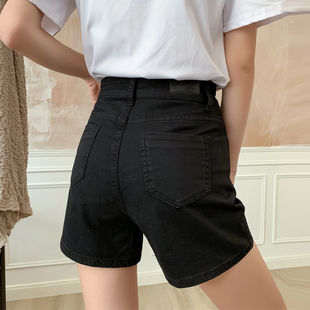显瘦百搭a字阔腿ins热裤 黑色高腰牛仔短裤 宽松大码 薄款 女2025夏季