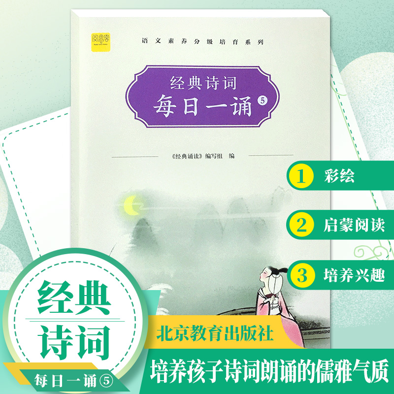 暑假读一本好书经典 小学语文素 诗词每日一诵5五年级彩绘版