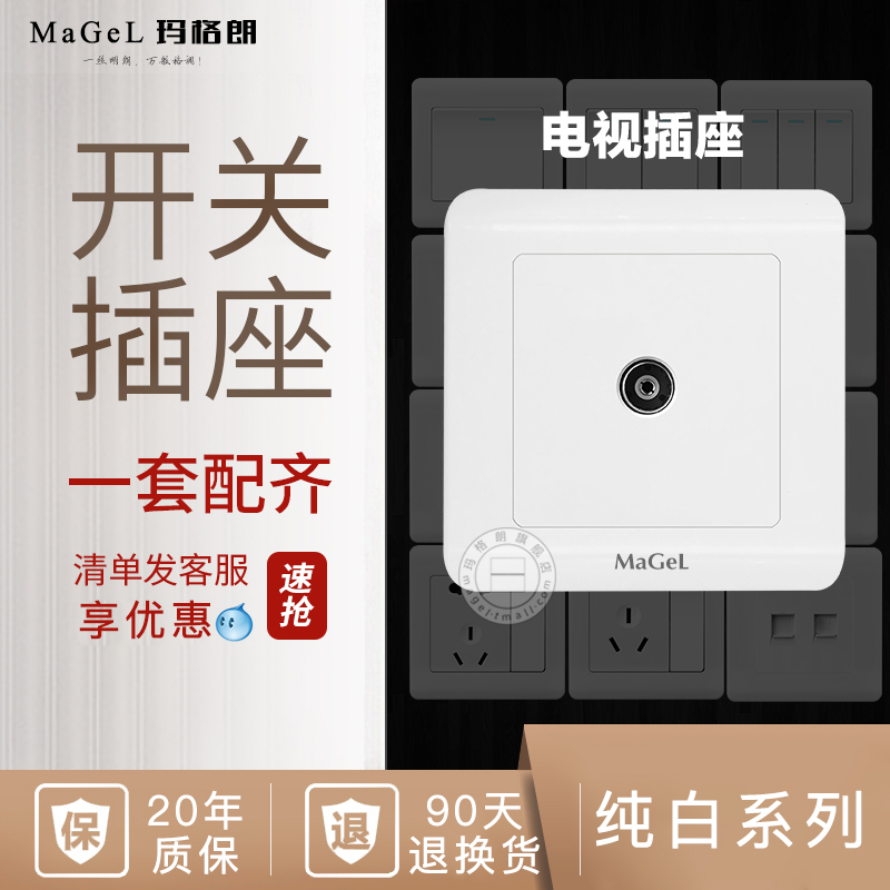 86型墙壁暗装 开关插座面板有线电视tv端口面板闭路电视机电视插座