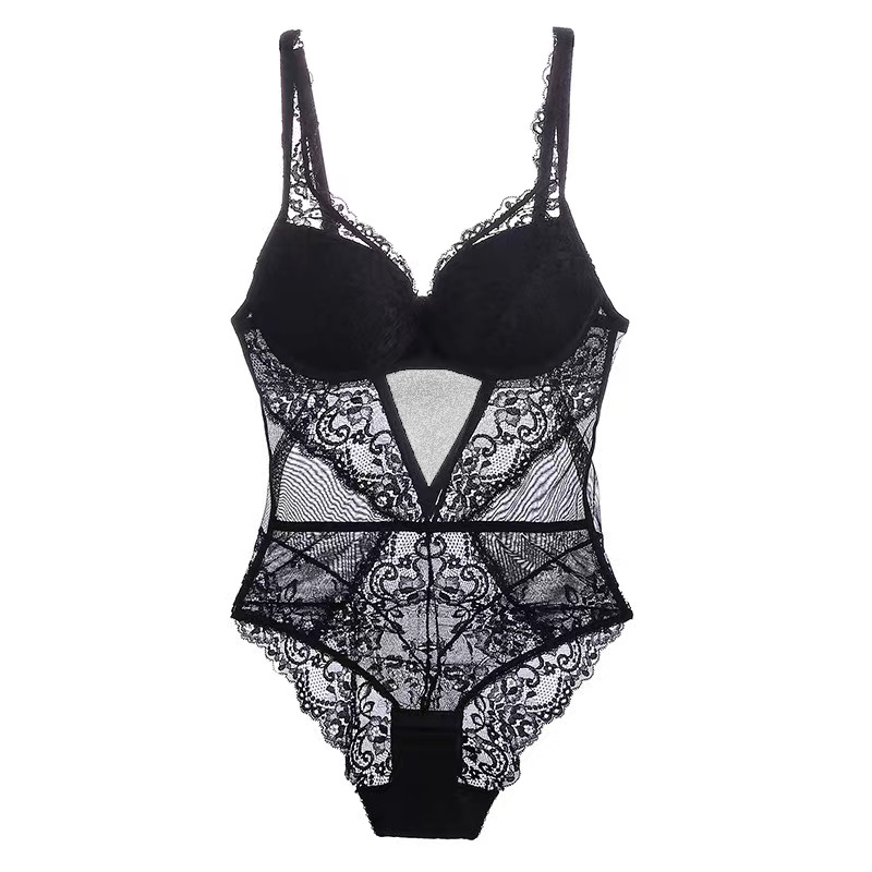 复古蕾丝刺绣内衣女套装 性感调整型微塑身连体衣带文胸聚拢