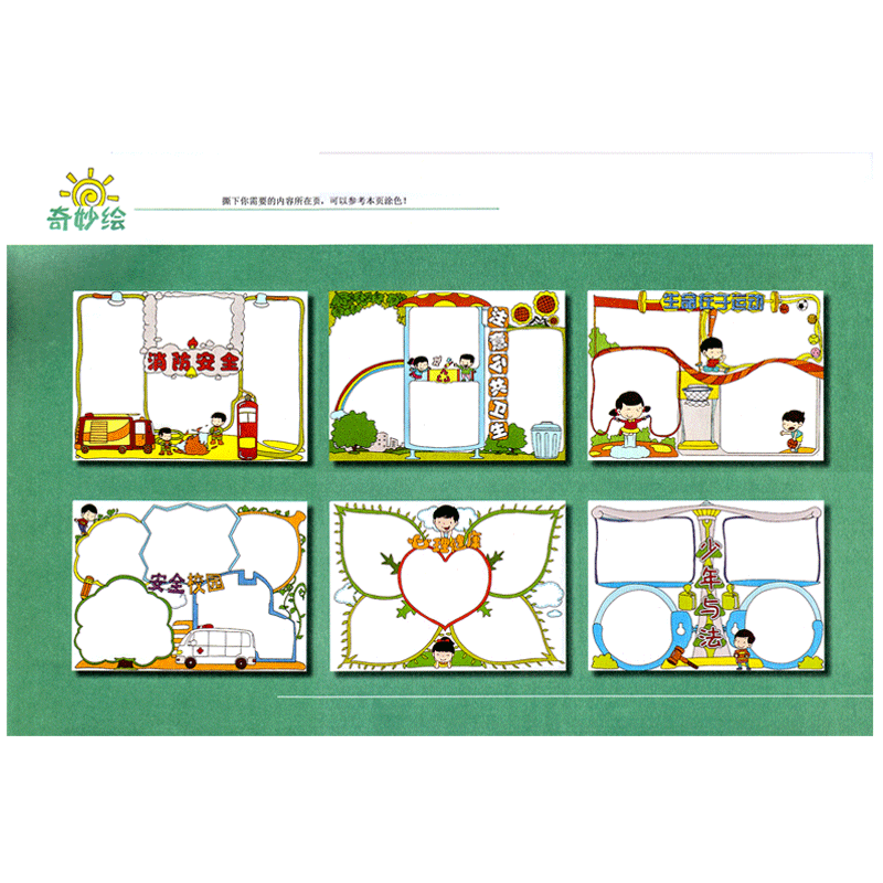 正版 生活篇儿童创意绘画涂色书校园生活幼儿涂色涂鸦绘画小学生原创手绘手抄报空白模板黑板报设计 奇妙绘校园手抄报涂色丛书8开版